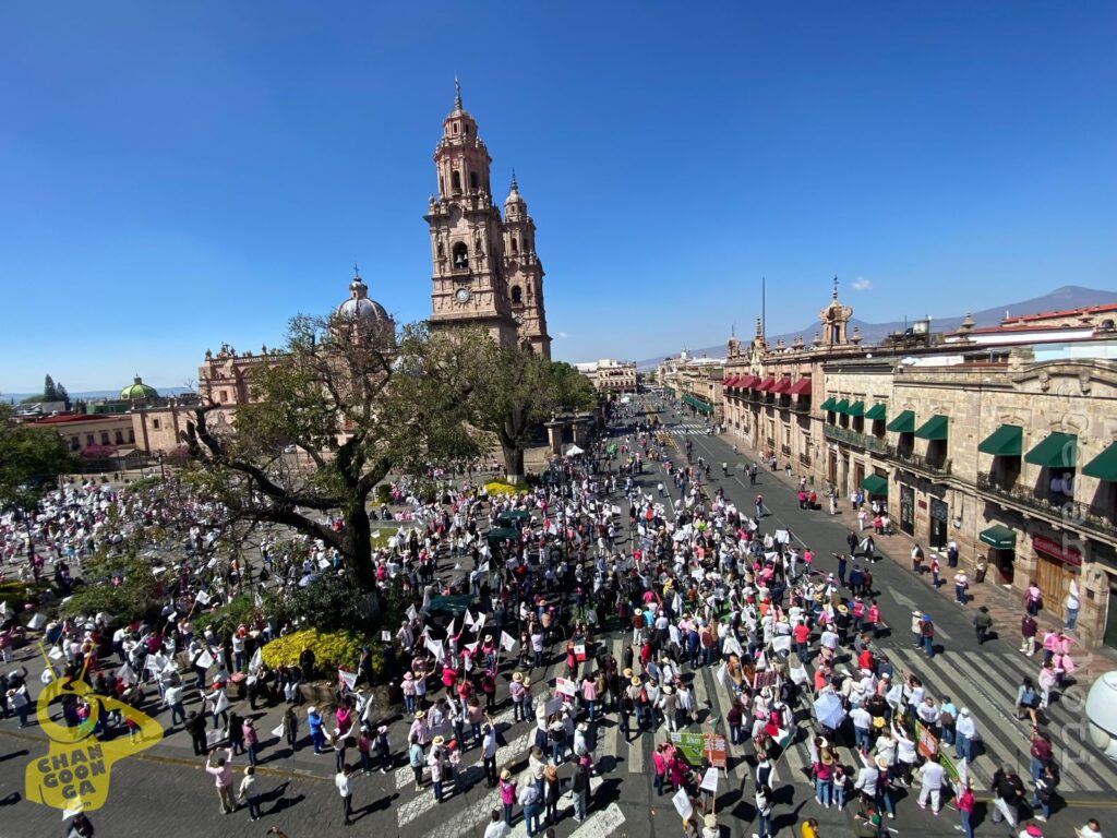 Aunque las cifras de asistentes varían demasiado [gobierno estatal dice que fueron 4 mil, policía municipal 10 mil y organizadores 20 mil], lo cierto es que fue multitudinaria la manifestación «rosa» en Morelia en defensa de la democracia la mañana de este domingo.
