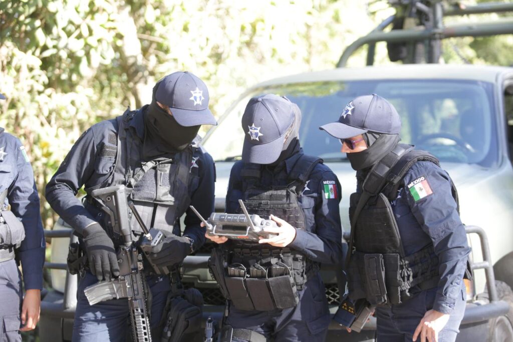 Elementos de las secretarías de Seguridad Pública (SSP) y de la Defensa Nacional (Sedena) y de la Fiscalía General del Estado (FGE) llevan a cabo un operativo en la tenencia de Atécuaro, en Morelia, tras los hechos registrados el jueves de esta semana donde un agente estatal falleció luego de que un grupo de civiles armados agredió a personal de la Guardia Civil.