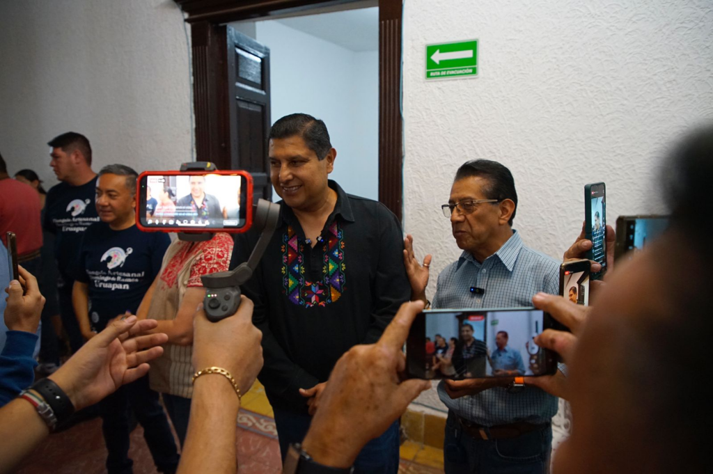 El presidente municipal de Uruapan, Nacho Campos, recibió esta noche a los artesanos participantes en la edición 2024 del Tianguis Artesanal de Domingo de Ramos, a quienes entregó el albergue en el que tendrán hospedaje y servicio médico las 24 horas del día durante la fiesta más grande de las artesanías en Latinoamérica.