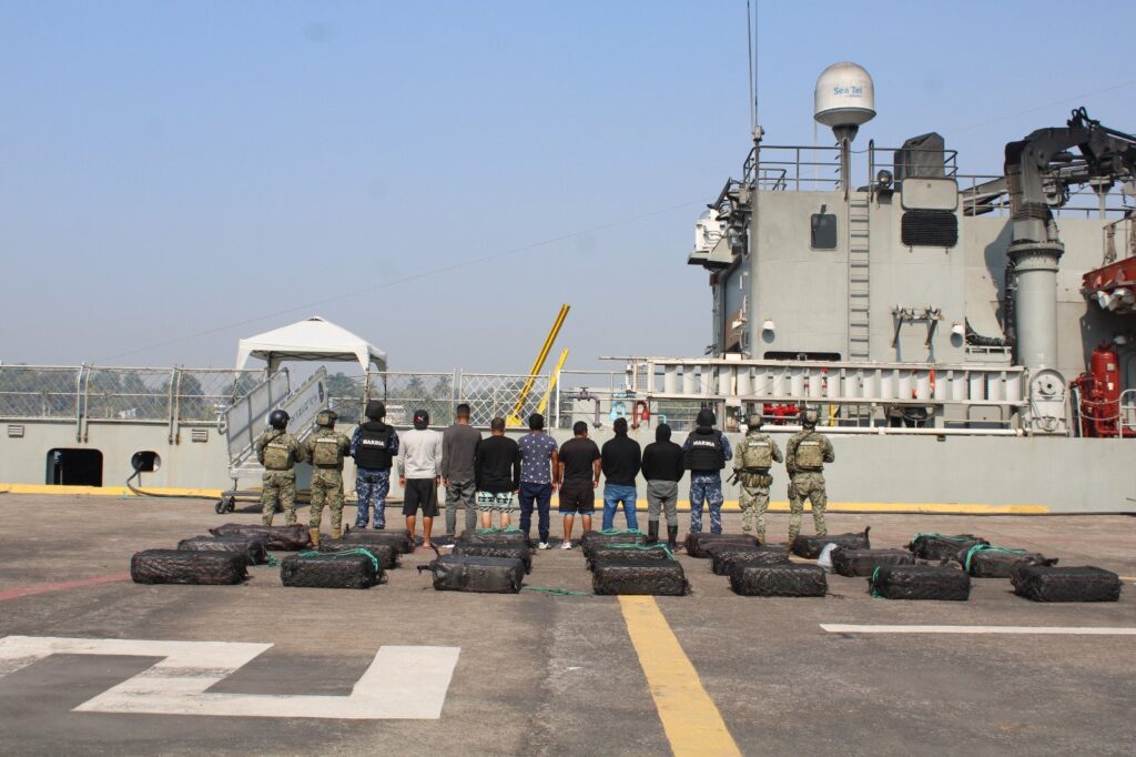 Este lunes, elementos de la Marina aseguraron en la costa de Lázaro Cárdenas, Michoacán, dos embarcaciones menores cargadas con 21 bultos, los cuales contenían una tonelada y media de cocaína, hecho por el que resultaron siete personas detenidas.