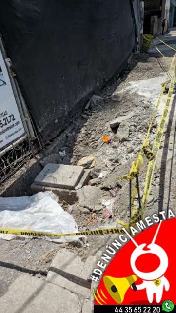 • La obra está provocando un socavón en la calle y tiene dañada la banqueta, haciendo imposible que el peatón transite.