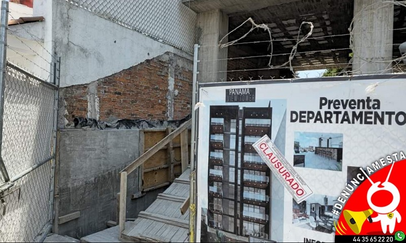En días anteriores los vecinos solicitamos el apoyo de Protección Civil de Morelia y de la Dirección de Orden Urbano quienes hicieron una inspección y corroboraron todas las fallas y clausuraron la obra. Ese mismo día el dueño fue a hacer su “berrinche” y presión a la Secretaría de Desarrollo Urbano e hizo lo imposible por volver a echar a andar con palancas la obra.