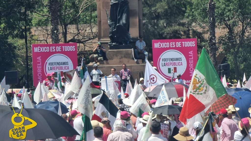 Ello luego de que la concurrencia, unas dos mil personas vestidas en su mayoría de rosa y blanco, habían cantado el Himno Nacional tras los dos discursos pronunciados por los ciudadanos Marycarmen Voirol y Froylán Muñoz, donde se convocó a defender las instituciones y apoyar a Xóchitl Gálvez.