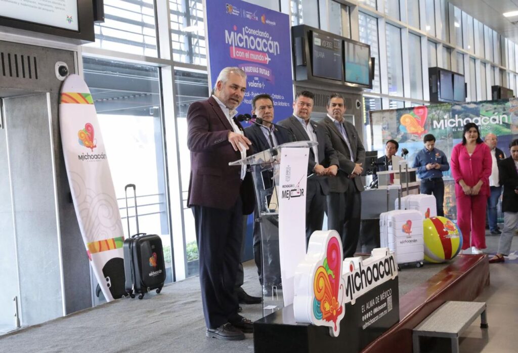 Al anunciar ocho nuevas rutas nacionales e internacionales de Volaris en el Aeropuerto Internacional “Francisco J. Mujica”, el gobernador Alfredo Ramírez Bedolla destacó que se trata de la expansión más grande en la historia, con lo que Michoacán llega a otro nivel de turismo que impulsará el desarrollo económico y social de la capital del estado y la región.
