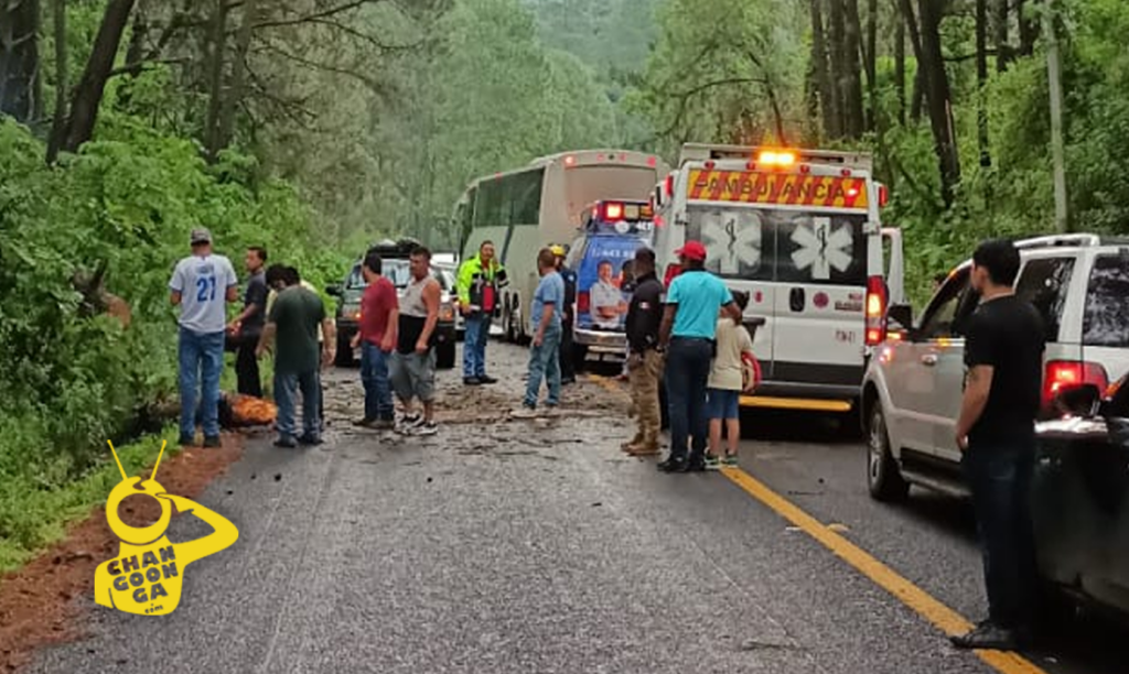 La tarde de este domingo, un árbol se desplomó y cayó sobre un autobús de turismo con saldo de dos lesionados graves, accidente registrado sobre la carretera «libre» Uruapan-Pátzcuaro, cerca de la comunidad de San Andrés Corú.