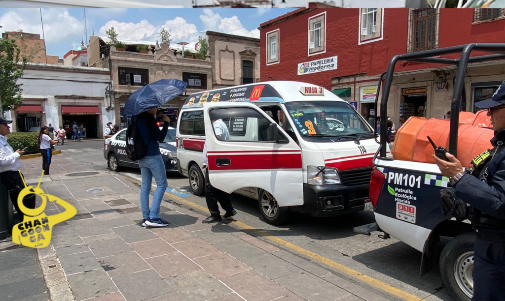 Una mujer resultó lastimada tras ser impactada por una combi de la Ruta Roja 3, esto en el Centro Histórico de Morelia, trascendió en la labor periodística.