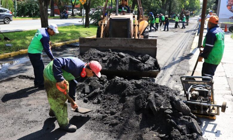 Las tareas consisten en bacheo con material asfáltico en avenida Camelinas, desde su cruce con calle Beethoven hasta la avenida Sansón Flores, en donde trabajan 2 brigadas de bacheo de la Secretaría de Obras Públicas en conjunto con la jetpatcher para reparar la vialidad y que el tránsito sea de forma segura para todos y todas las automovilistas.