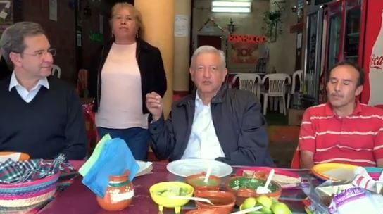 Estamos en Temascaltepec en esta fonda Misael, aquí siempre pasamos cuando vamos a Tejupilco, cuando vamos a Altamirano a la Tierra Caliente de Michoacán, de Guerrero, este es el paso obligado desde hace años, esta fonda”, dijo López Obrador sentado en una mesa junto al secretario de Educación Pública, Esteban Moctezuma.
