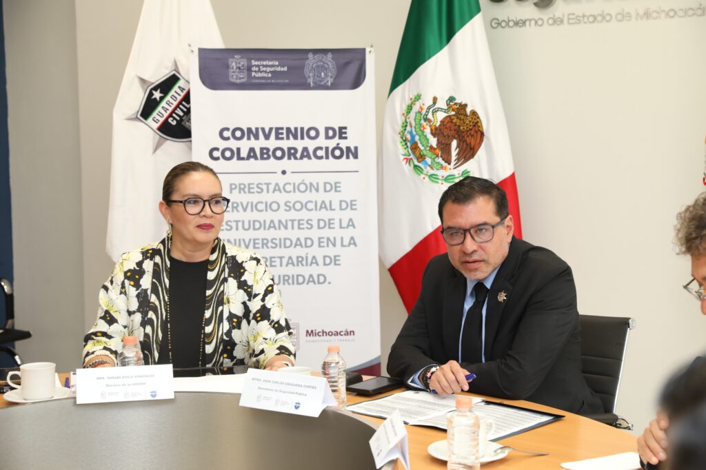 La Universidad Michoacana de San Nicolás de Hidalgo (UMSNH) y la Secretaría de Seguridad Pública (SSP) de Michoacán pactaron trabajar en equipo en beneficio del estudiantado y de la sociedad en general, tras la firma de dos convenios de colaboración entre la rectora Yarabí Ávila González y el titular de la dependencia estatal, Juan Carlos Oseguera Cortés.