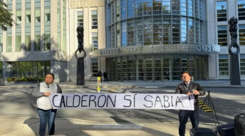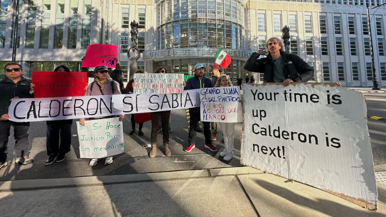 Al momento, en Nueva York, Estados Unidos, en donde se desarrolla el juicio de Genaro García, un grupo de mexicanos protestaron afuera de la Corte con pancartas que señalaban: «Calderón sí sabía» y «Partido Acción del Narco». Exigen una condena ejemplar para el exfuncionario, quien se alineó a las filas del crimen organizado.