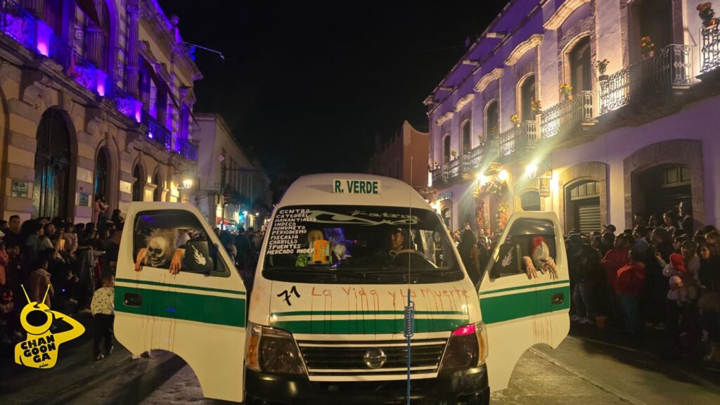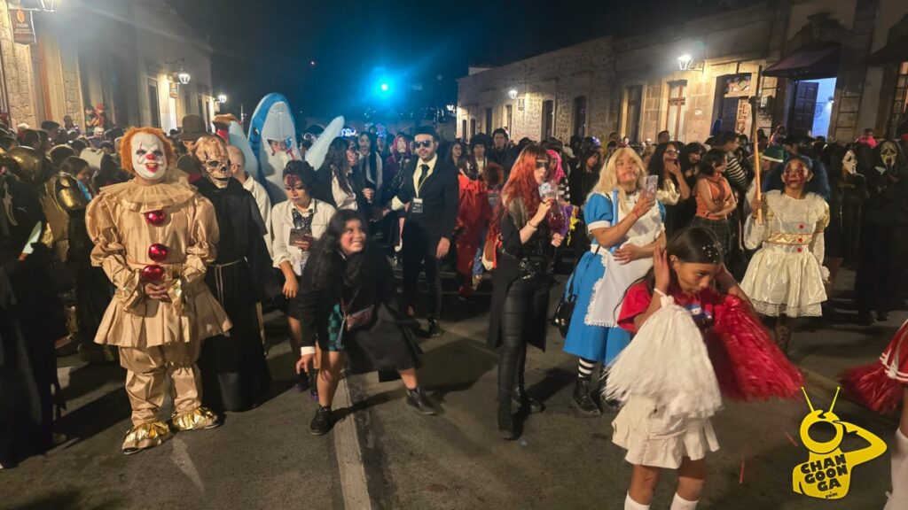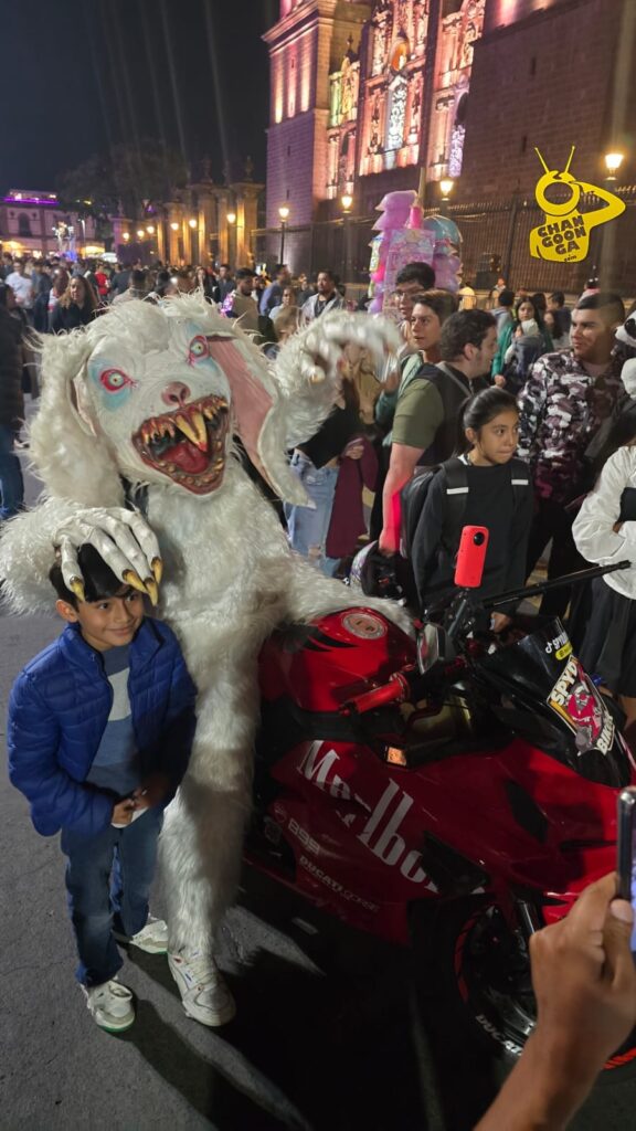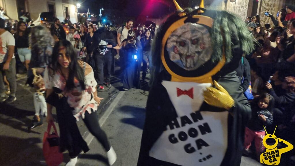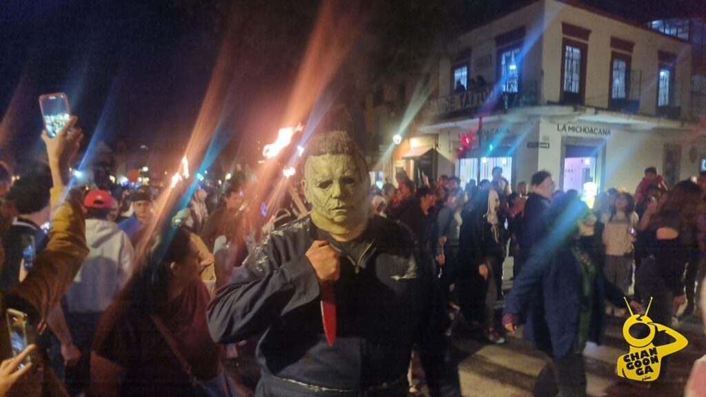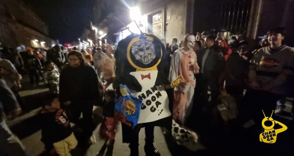 Mención especial para la botarga changoonguera que ahora se caracterizó de ‘Billy’ el muñeco de la saga de terror Saw, que repartió dulces y golosinas entre la concurrencia y se llevó a cambio algunas mentadas y chiflidos cuando estos se le acabaron.