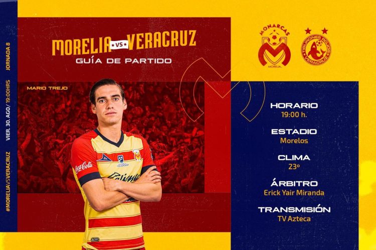 Monarcas Morelia recibe al equipo de Veracruz En el Coloso del Quinceo para el encuentro correspondiente a la jornada 8 que se jugará a las 19:00 hrs y en el marco del Día del Abuelo en México, entrarán gratis al Estadio Morelos.