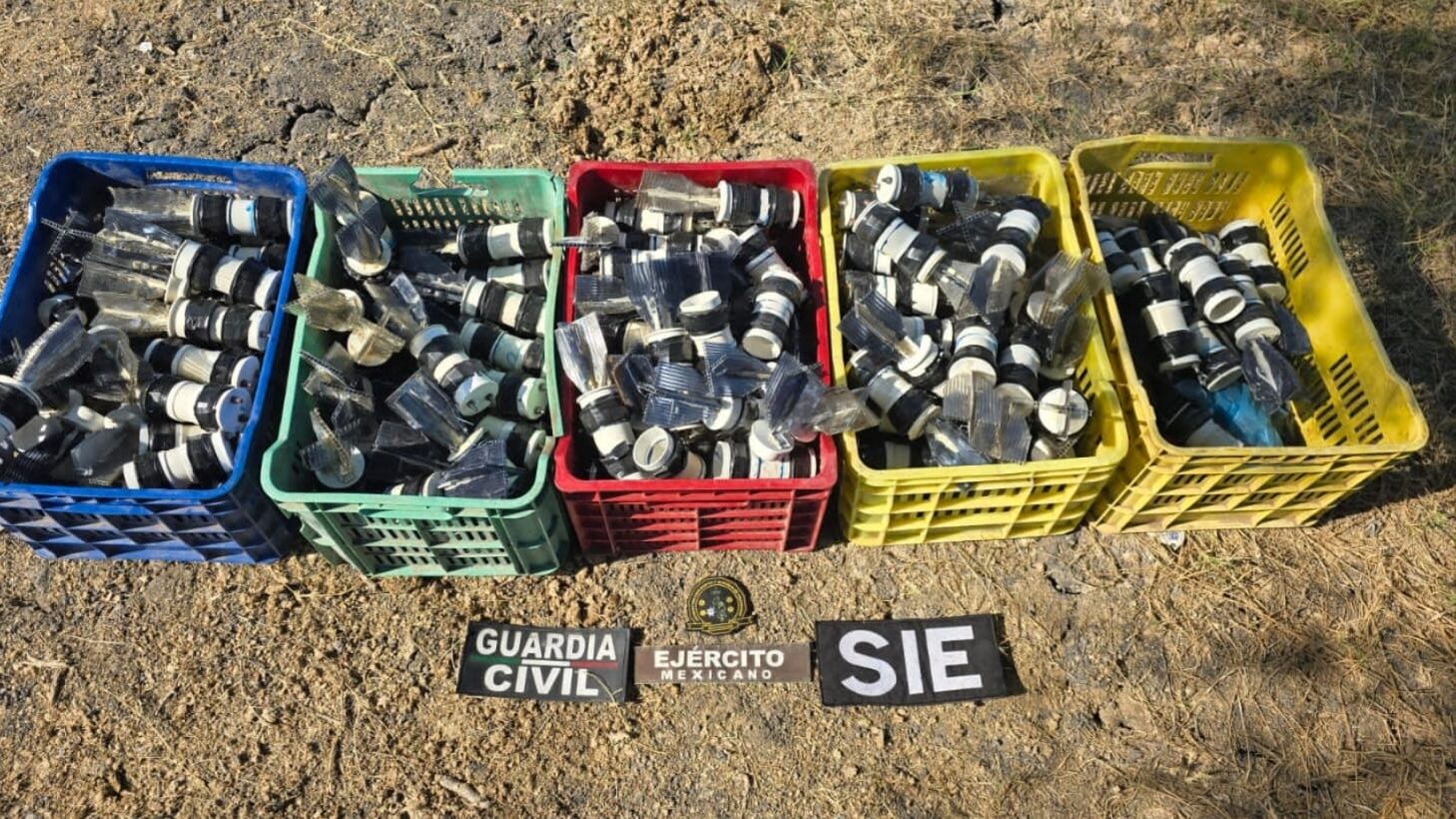 En el poblado de Catalinas, municipio de Apatzingán, agentes de las secretarías de Seguridad Pública (SSP) y de la Defensa Nacional (Defensa) localizaron y desactivaron 203 artefactos explosivos improvisados.