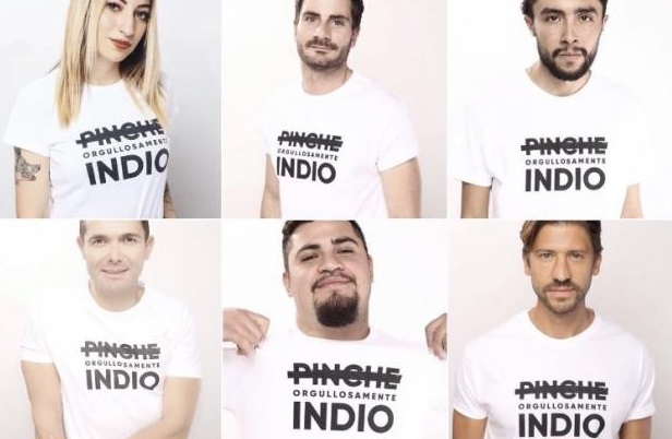 El hashtag #OrgullosamenteIndio comenzó a ser difundido en redes sociales acompañado con fotos de personajes famosos usando una playera en la que se puede leer la palabra ‘pinche’ tachada y por abajo Orgullosamente Indio.