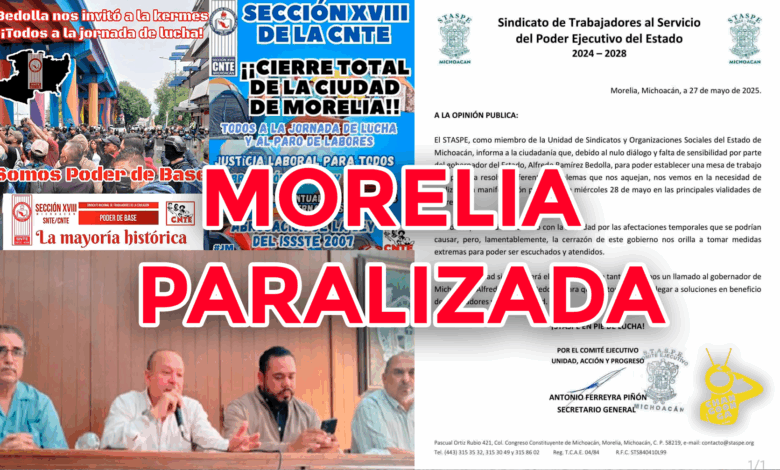La amenaza será concretada: Este miércoles diversos sindicatos unidos de Michoacán paralizarán la capital del estado por falta de atención a sus demandas y la negativa del gobernador Alfredo Ramírez Bedolla de sentarse a dialogar con ellos.