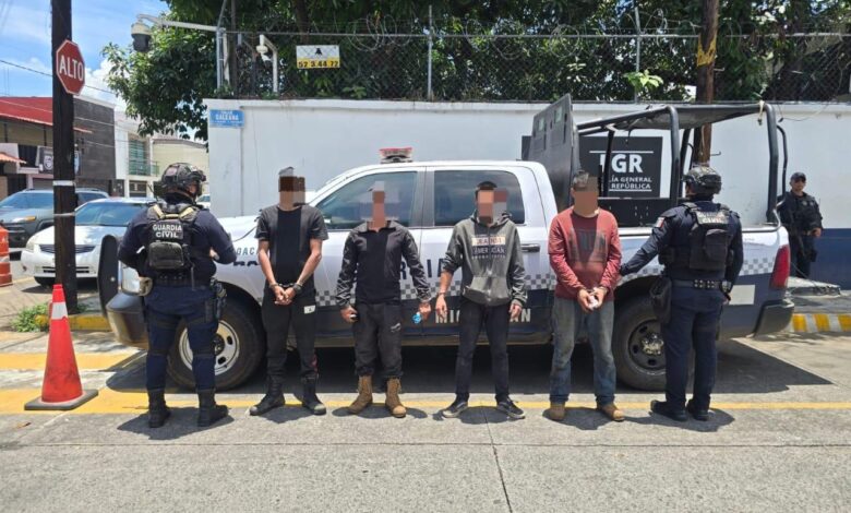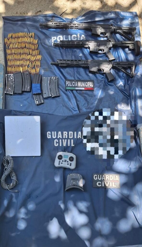 Les fueron decomisadas tres armas de fuego calibre 5.56 milímetros, 188 cartuchos útiles, siete cargadores, así como una antena satelital y un control de dron. Junto con los detenidos, serán puestos a disposición de la autoridad correspondiente.