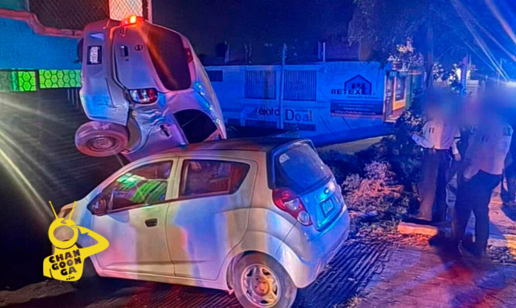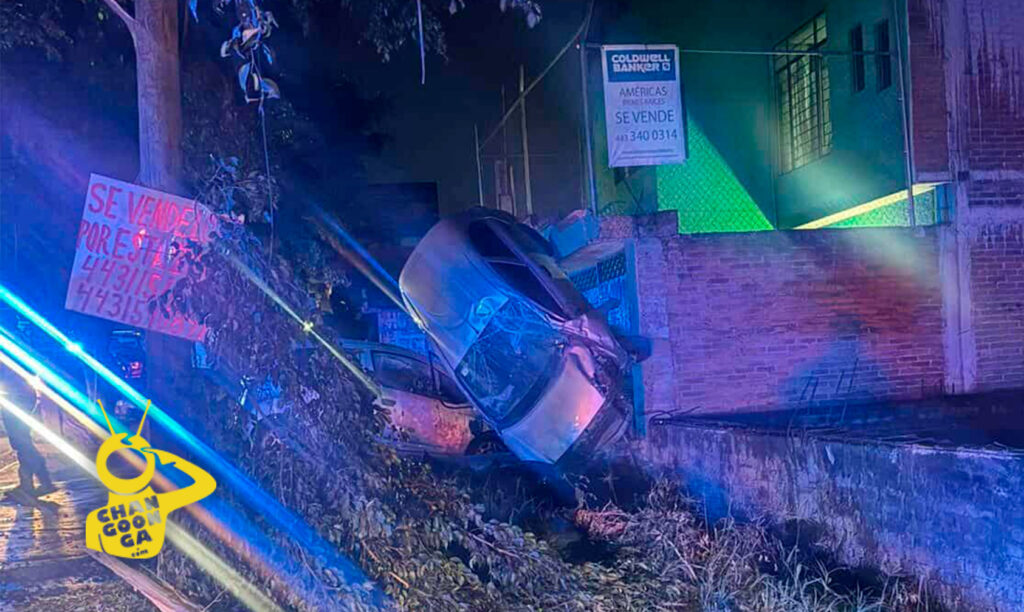 Un automóvil terminó volcado y parcialmente encima de otro vehículo, esto tras salir de la carpeta asfáltica y chocar contra un poste de madera ubicado a la orilla de una de las laterales de la avenida Morelos Norte, en Morelia, indicaron fuentes allegadas al tema.