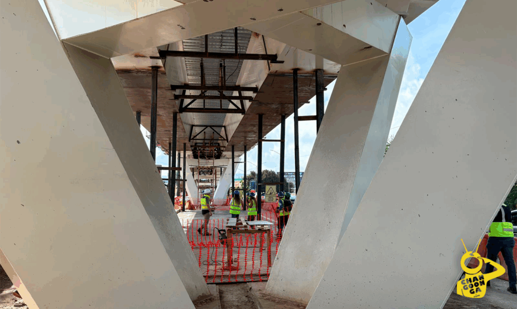 La obra integra estructuras metálicas de gran tamaño, con trabes que alcanzan los 50 metros y pruebas de calidad rigurosas, incluyendo ultrasonido y líquidos penetrantes para detectar fisuras. Además, los neoprenos de las columnas cuentan con certificación oficial para garantizar el diseño antisísmico.