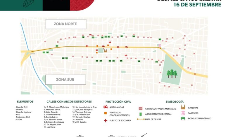 El personal de seguridad instalará accesos para las y los asistentes a lo largo de la avenida Francisco I. Madero, iniciando por dos arcos entre las calles Allende y Mariano Michelena (cerca del monumento a Lázaro Cárdenas), equipos de revisión de pertenencias se encontrarán también en las calles colindantes a la citada avenida: