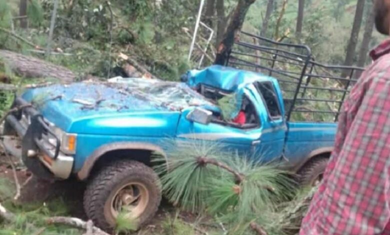 Un hombre falleció, mientras que una mujer que lo acompañaba resultó lesionada al ser aplastados por un árbol, mientras viajaban en una camioneta en una zona boscosa de este municipio de Tingambato.