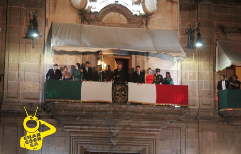 Al grito de «viva México» comenzó a replicar la campana que tienen en palacio de gobierno estatal en la ciudad de Morelia, capital del Estado, un emocionado gobernador, salió con la bandera mexicana a dar su grito.