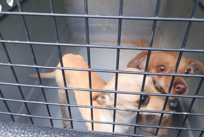 Con la respectiva orden judicial, personal ministerial, así como peritos en criminalística y veterinaria, llevaron a cabo la diligencia en el domicilio ubicado en la colonia Gertrudis Sánchez, en el que fueron localizadas dos perritas de raza chihuahua: una de color café y otra blanca con manchas café, ambas en condiciones de maltrato.