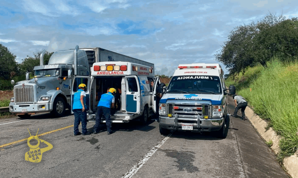 El otro hecho fue en el kilómetro 174, cerca de la comunidad de Las Cañas, municipio de Arteaga, donde un tractocamión Kenworth amarillo con placas 38 BH 6J se salió del camino y chocó contra un paredón.