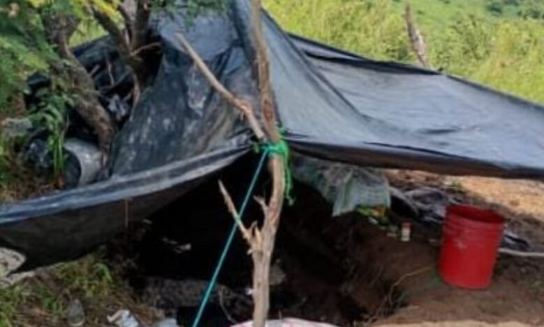 En acción coordinada entre agentes de las secretarías de Seguridad Pública (SSP) y de la Defensa Nacional (Defensa), se localizaron y destruyeron dos campamentos con parapetos empleados aparentemente para realizar conductas ilícitas.
