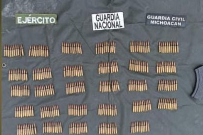En una zona serrana de la localidad de El Caulote, municipio de Parácuaro, los elementos de la Guardia Civil, Ejército Mexicano y Guardia Nacional ubicaron dos campamentos clandestinos, en los cuales fueron encontrados 290 cartuchos calibre 7.62X51 milímetros, así como un cargador.