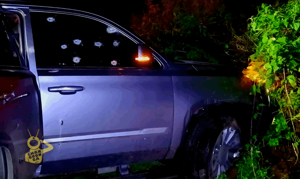 Mientras que la unidad de las víctimas corresponde a una camioneta Cadillac Escalade, de color gris, misma que terminó impactada contra un paredón, con múltiples impactos de proyectil de arma de fuego en la carrocería y los cristales.