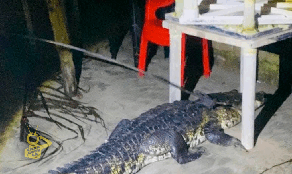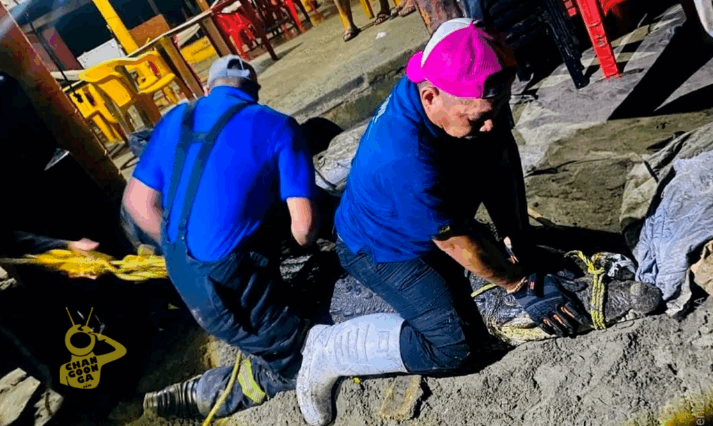 Personal de Protección Civil, logró la captura de un cocodrilo de aproximadamente cuatro metros en la tenencia de Playa Azul, Lázaro Cárdenas, tras recibir un reporte de emergencia.