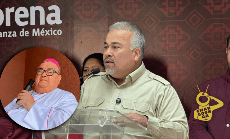 “No me vayan a excomulgar”, ironizó el dirigente estatal del partido Movimiento de Regeneración Nacional (Morena), Jesús Mora González, al arremeter contra el arzobispo de Morelia, Carlos Garfias Merlos, luego de que este último criticara las políticas federales y estatales al asegurar que los resultados de gobierno no reflejan la percepción ciudadana.