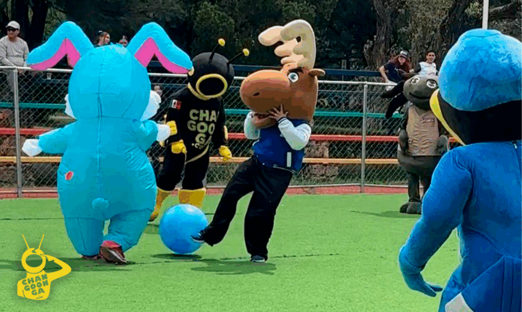 Para cerrar el evento, las botargas se echaron un partido de futbol que dejó a más de una sin aliento… incluido el Changoonauta, que ya se veía cansado, pero feliz de haber dejado huella en su primera aparición pública.