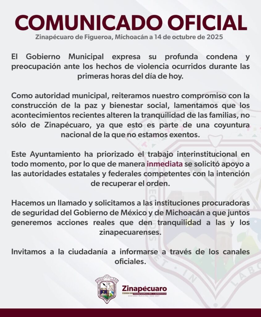Delincuentes fuertemente armados rafaguearon la presidencia municipal de Zinapécuaro y arrojaron explosivos desde drones, ataque que también dañó al menos tres domicilios y además terminó destruido un poste con cámaras de vigilancia del C5, informaron autoridades policiales.