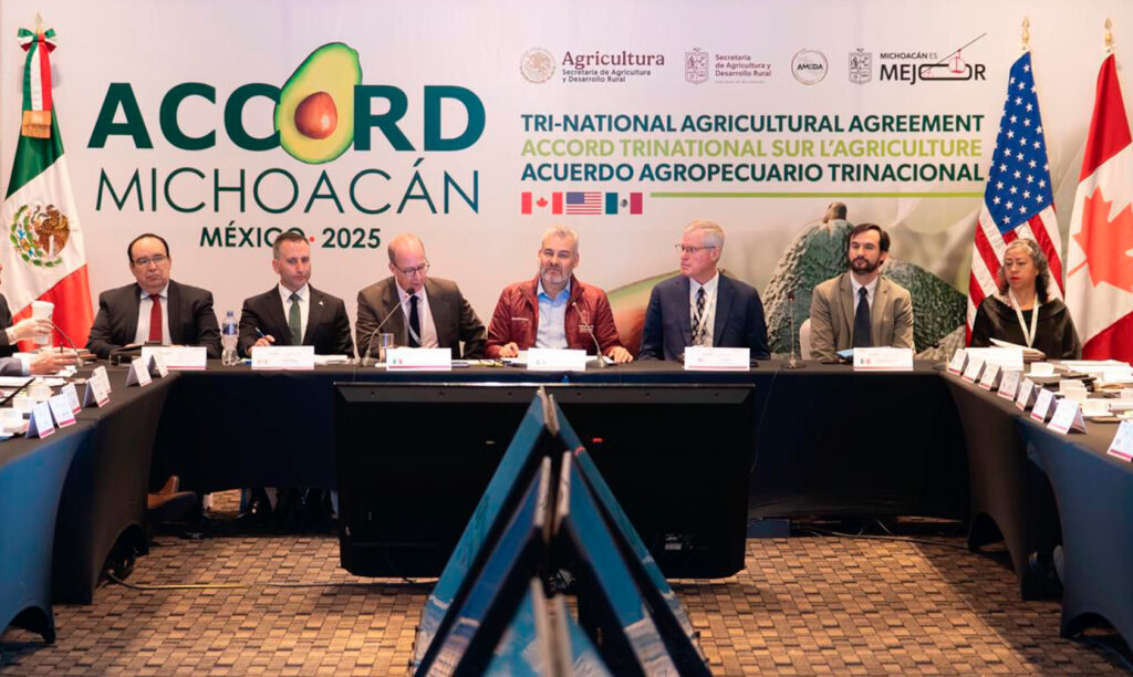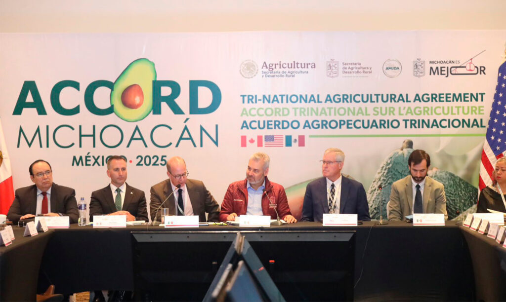 Con el Acuerdo Agropecuario Trinacional que se genera en el marco de la revisión del Tratado entre México, Estados Unidos y Canada (T-MEC), donde participan delegaciones de empresarios agrícolas, ministros de provincias de Canadá y secretarios de Agricultura de estados de la unión americana, se reafirma alianza comercial del sector agropecuario de los tres países, así lo señaló el gobernador Alfredo Ramírez Bedolla.