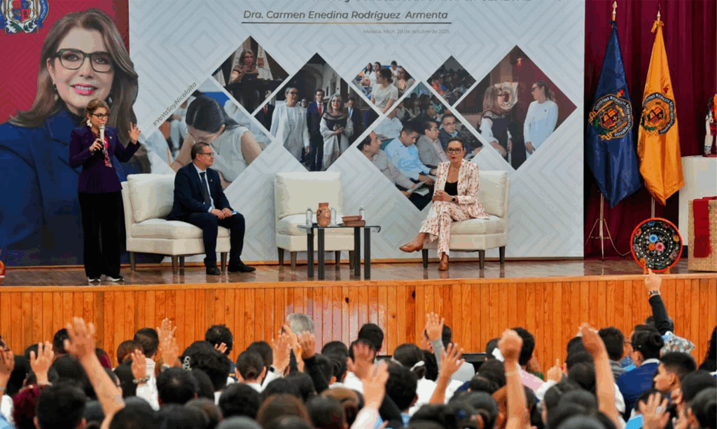 Lo anterior, al brindar la conferencia magistral “Innovación en microcredenciales y solidez académica en Ceneval”, en donde estuvo acompañada por la rectora de la Universidad Michoacana de San Nicolás de Hidalgo (UMSNH), Yarabí Ávila González.