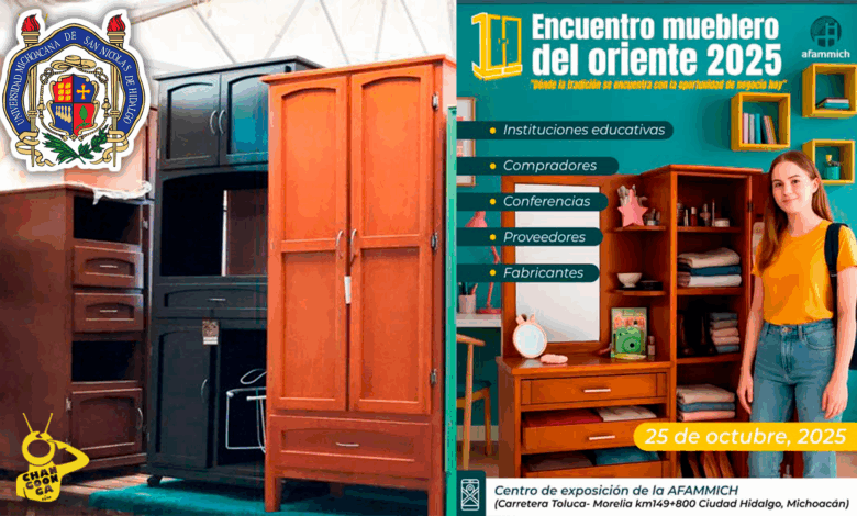 El próximo sábado 25 de octubre, Ciudad Hidalgo será sede del Encuentro Mueblero del Oriente de Michoacán, evento impulsado por la Universidad Michoacana de San Nicolás de Hidalgo (UMSNH) y la Asociación de Fabricantes de Muebles de Michoacán (Afammich), que se realizará en el Centro de Exposiciones Afammich, ubicado en el paraje conocido como Casa del Padre, con el objetivo de vincular a productores, estudiantes y empresarios en favor de la modernización del sector.