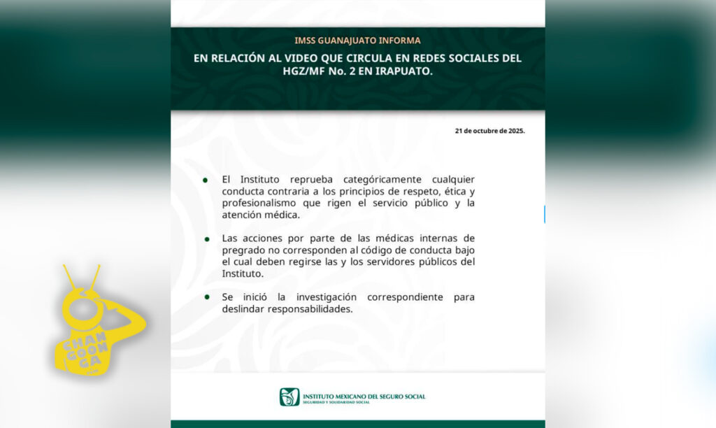 El IMSS estatal emitió un comunicado donde dice que no aprueba este tipo de conducta, menciona que ese comportamiento va contra la ética, el respeto y el profesionalismo que debe tener el personal médico.