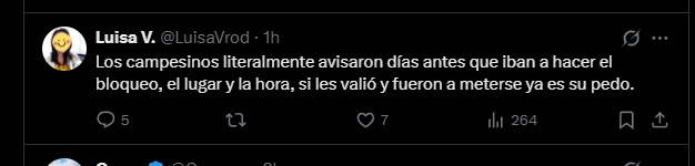 “Los campesinos literalmente avisaron días antes que iban a hacer el bloqueo, el lugar y la hora. Si les valió y fueron a meterse, ya es su problema”, escribió la usuaria «Luisa V».
