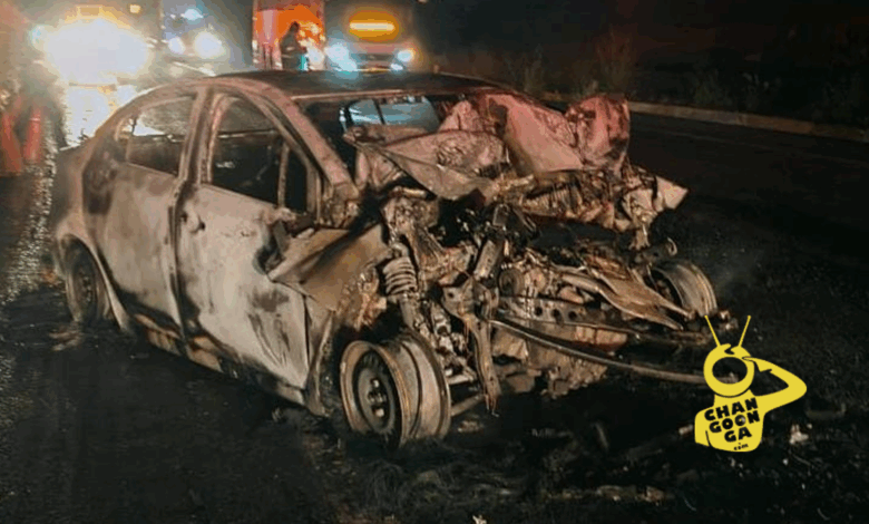 El hecho fue a la altura del kilómetro 107+600 del tramo Uruapan-Nueva Italia, cuando un vehículo Nissan Versa blanco, con placas PKA-605-E, se impactó por alcance contra un tráiler que posteriormente se dio a la fuga. Tras el choque, el automóvil se incendió, quedando completamente calcinado.
