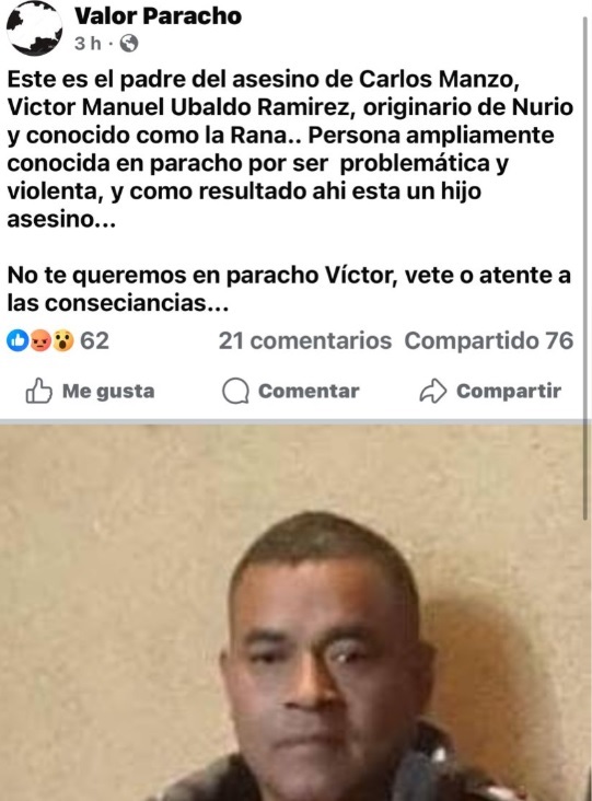 “No te queremos en Paracho Víctor, vete o atente a las consecuencias” señala una de las amenazas emitidas dese el grupo “Mercadito Paracho”. En los comentarios se acusa al padre de familia de haber dado un mal ejemplo a su hijo siendo él mismo una mala persona, un mal vecino, mientras que otros usuarios de redes claman que el chico no sea enterrado en Paracho sino fuera de la localidad.