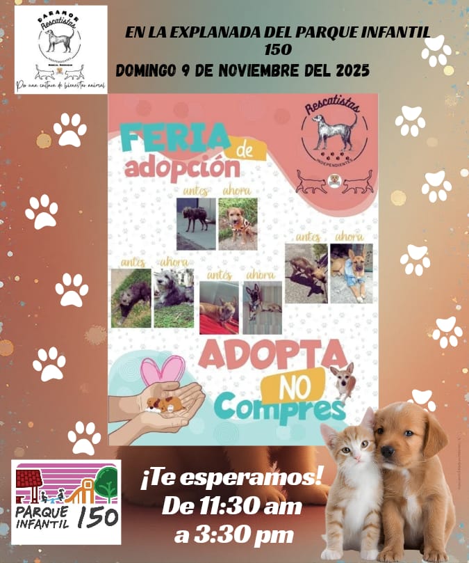 Este domingo 9 de noviembre, el colectivo D.A.R.A.M.O.R Rescatistas Independientes de Michoacán volverá a llenar de esperanza el Parque 150 con una feria de adopción muy peculiar, los humanos podrán desfilar con sus mejores galas y sonrisas, en la esperanza de ser elegidos por un exigente jurado peludo.