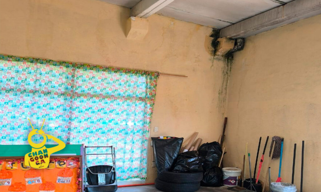 En medio de goteras constantes, techos de lámina y lona improvisada, sin energía eléctrica, ni agua potable, 23 pequeñitos del preescolar Nueva Creación Villas de la Loma sobreviven diariamente a un escenario lleno de arañas, alacranes e instalaciones prácticamente colapsadas.