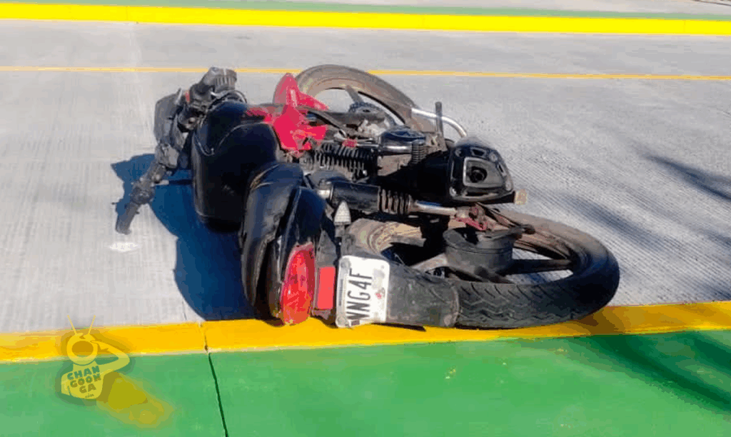 El percance ocurrió la tarde de este sábado sobre la avenida Del Molcajete, cerca de una brecha de terracería que conduce a la población de San Nicolás Obispo. Se apreció que la moto siniestrada es una de colores rojo y negro, con placa NNG4F.
