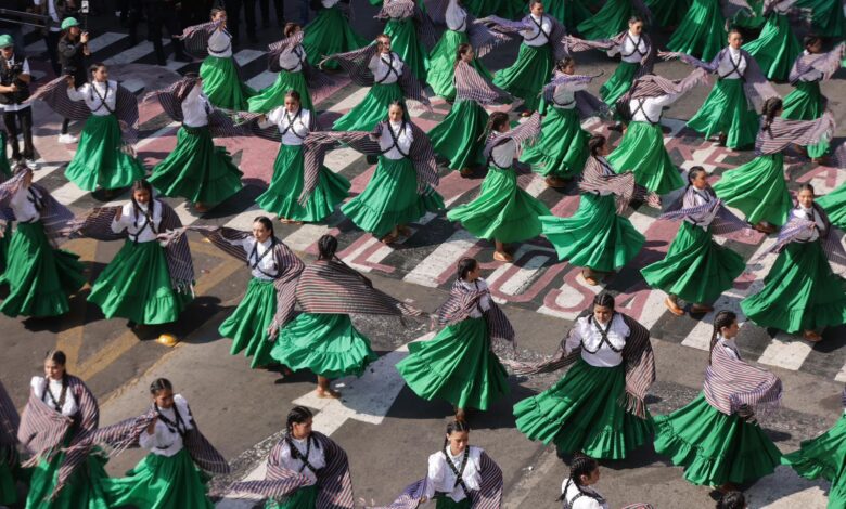 Desde el balcón de Palacio de Gobierno, el mandatario observó el paso de 2 mil 580 participantes por la avenida Madero, entre estudiantes de educación media superior y superior, trabajadores estatales y municipales, integrantes de asociaciones deportivas, militares y guardias nacionales, entre otros participantes.