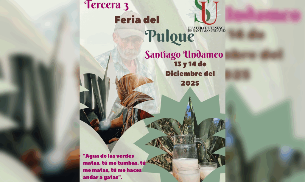 Por su parte, el jefe de Tenencia de Santiago Undameo, Arturo Herrera Guzmán, presentó la Tercera Feria del Pulque, que se llevará a cabo el 13 y 14 de diciembre, con la participación de 20 productores locales que ofrecerán pulque natural, bebidas elaboradas a base de pulque y gastronomía tradicional.