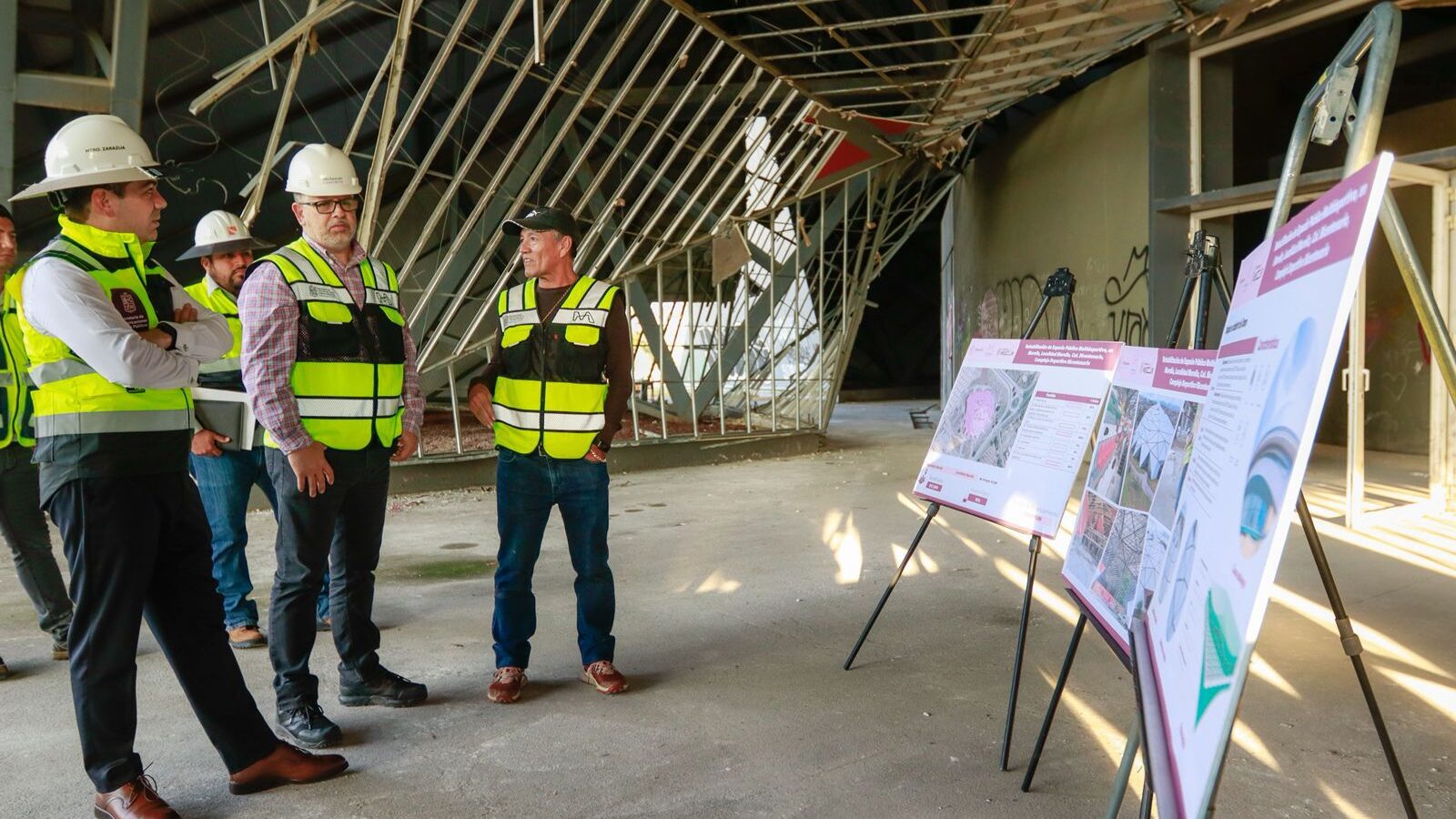 A la fecha, la SCOP ejecuta labores de limpieza gruesa, desazolve de registros sanitarios, retiro de plafones y muros de Durock, instalación eléctrica, cancelerías, herrerías, así como colocación de rejacero en el cerco perimetral exterior.