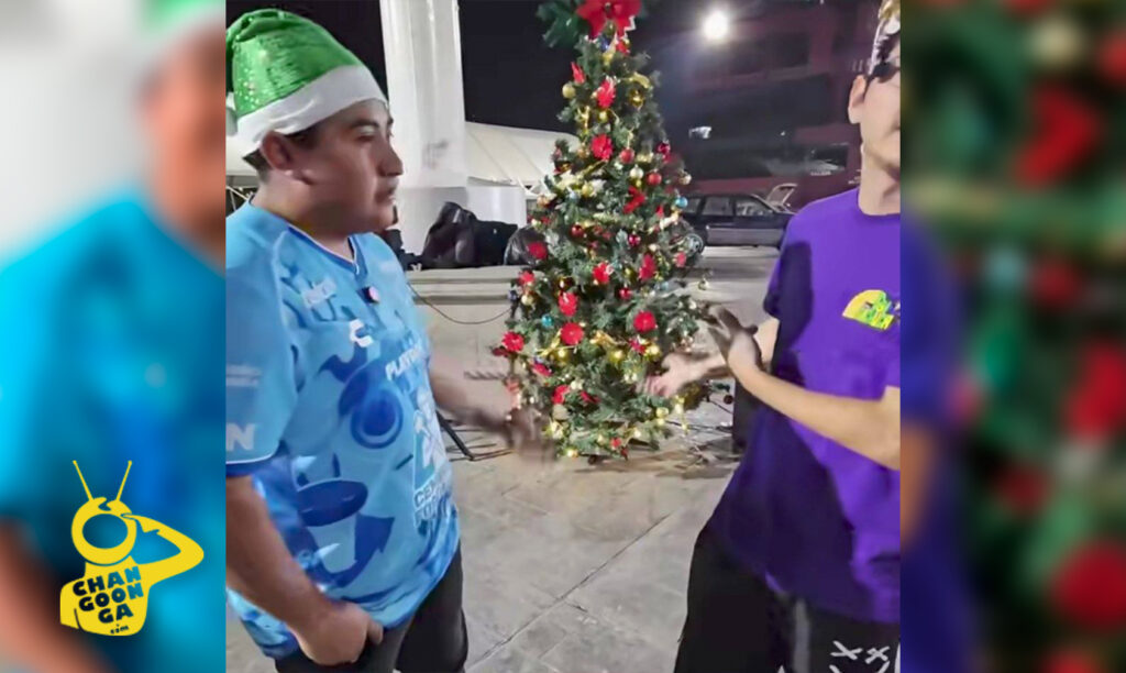 Dos jóvenes decidieron hacer encendido de árbol navideño, y armaron una fiesta, ya que el tradicional encendido no se hará este año.