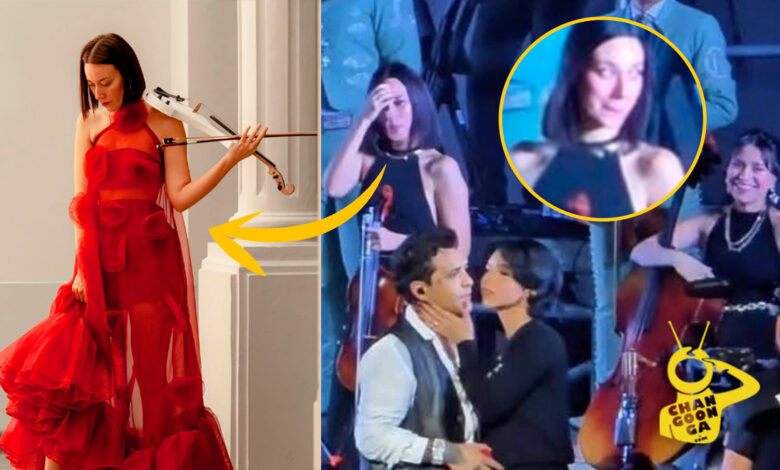 Mientras Ángela saludaba al público, la violinista y chelista, voltean a verse entre ellas mismas, hacen miradas incomodas e incluso una reacción que la gente interpreto como “no la toleran”.