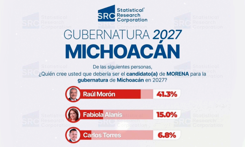 La muestra ubica a Raúl Morón en el lado de los hombres y a Fabiola Alanís en las mujeres como punteros de cara a la elección por la gubernatura de Michoacán con una amplia ventaja sobre otros militantes del mismo instituto político.